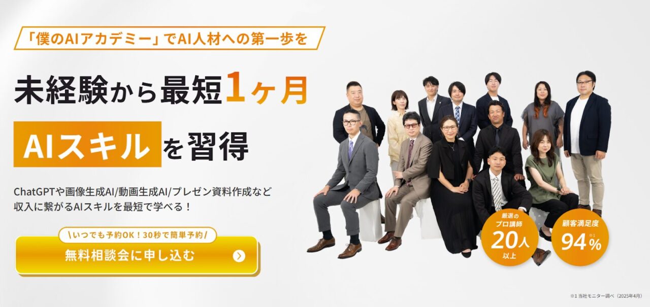 AI活用での副業が注目を集める中、「興味はあるけどできるか心配」と感じ、AIに対し一歩を踏み出せない方が多いのも現状です。そのため、AIのノウハウが学べるサービスが人気となっており、今回紹介する「僕のAIアカデミー」も例外ではありません。