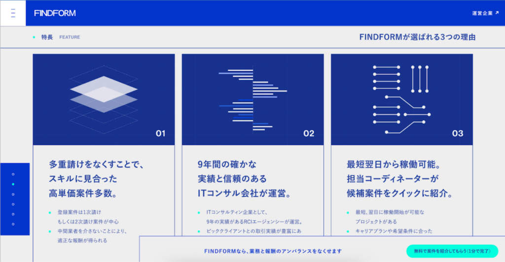 まずはFINDFORMで紹介されている案件の特徴をみていきましょう。主な特徴は以下の2点です。それぞれを詳しく解説します。