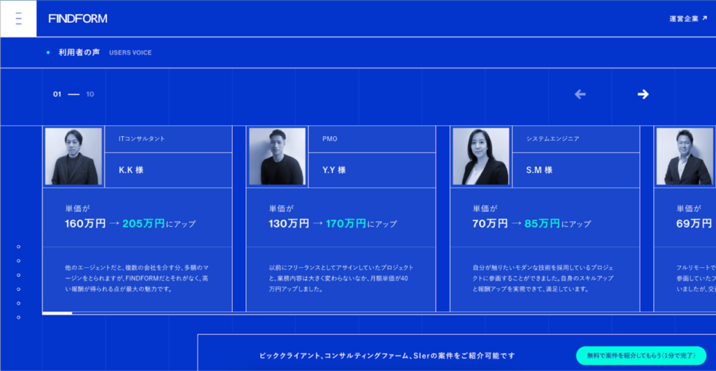 以上のように、FINDFORMを利用することで単価を上げられるだけでなく、自身が希望する働き方や案件に参画できる可能性があります。自身の経験を活かし、現状をよりよく変えたい方は積極的に利用してみましょう。